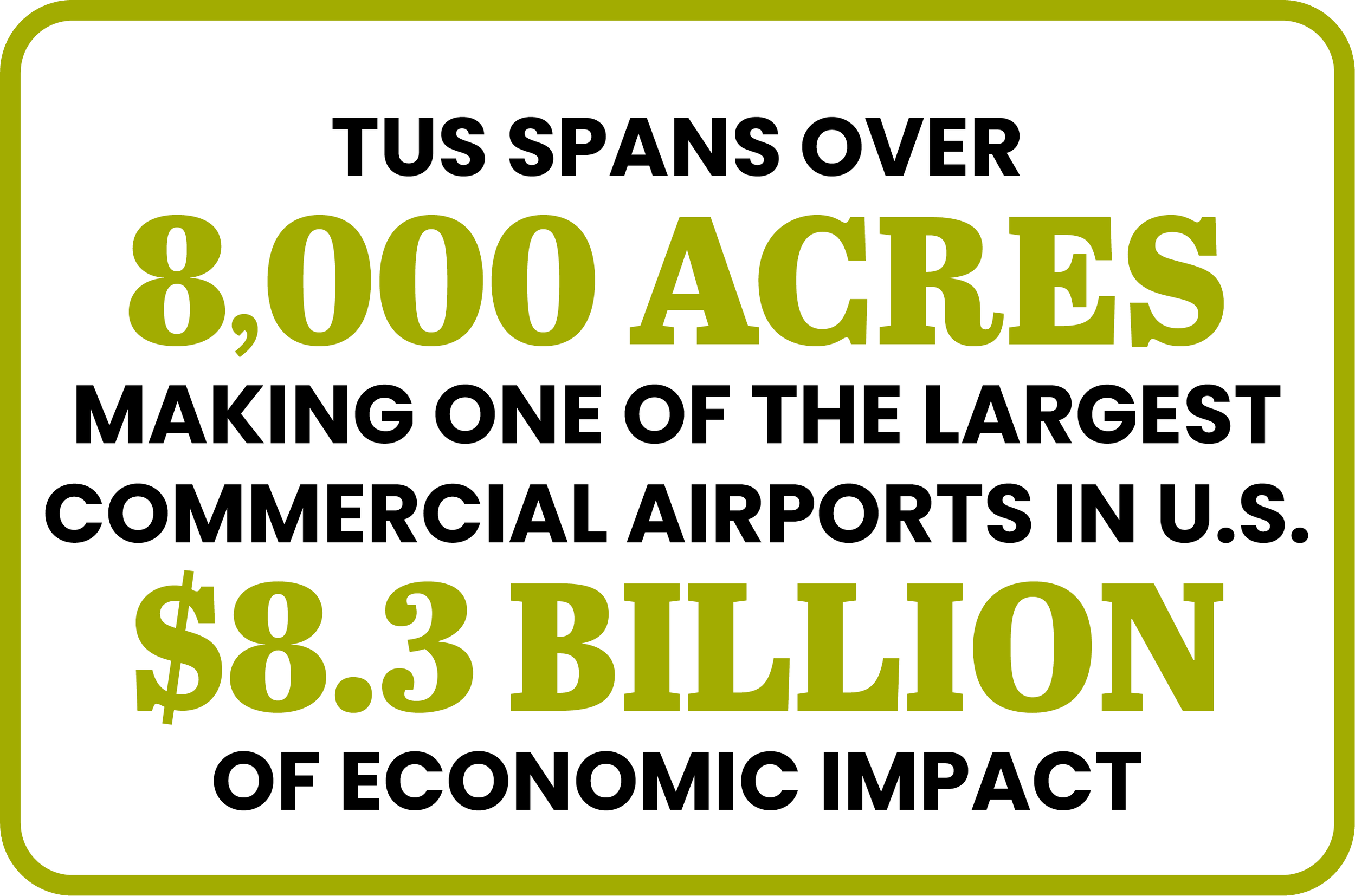 Size & Importance: TUS spans over 8,000 acres, making it one of the largest commercial airports in the U.S. and is Arizona’s second busiest airport.
