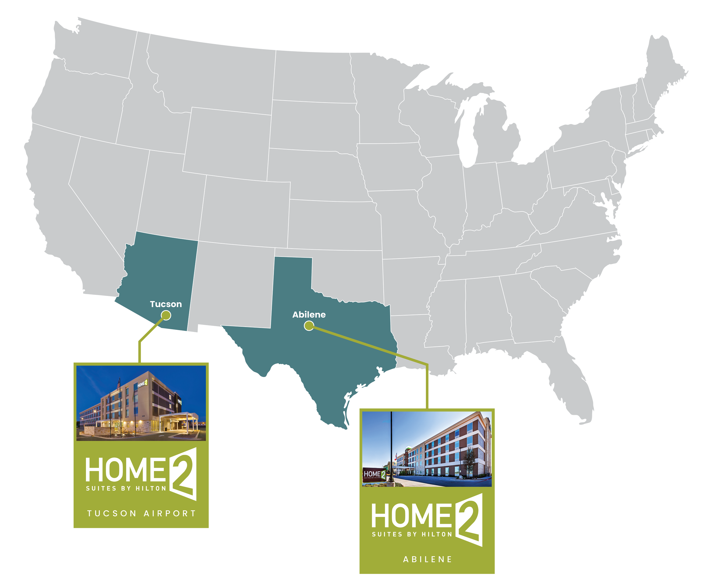 Hodges Ward Elliott (“HWE”) is pleased to present the opportunity to acquire the fee-simple interest in the 123-key Home2 Suites Tucson Airport and the 111-key Home2 Suites Abilene (“Properties” or “Hotels). Strategically positioned in two high-growth Western U.S. markets, these high-performing Hotels (ranked #1 in RevPAR in their respective competitive sets) offer a compelling investment supported by strong economic drivers.