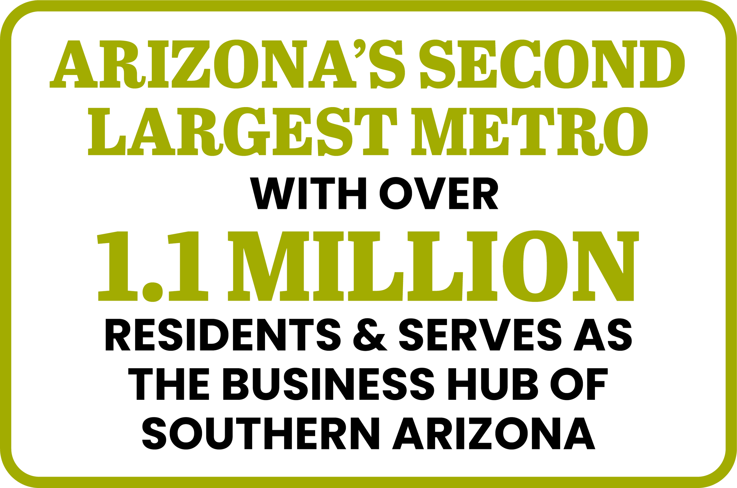 Tucson, Arizona’s second-largest metro, is home to over 1.1 million residents and serves as the economic and business hub of Southern Arizona.
